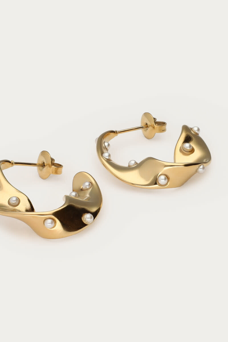 Bold Oorringen met Swirl en Zoetwaterparels Goud