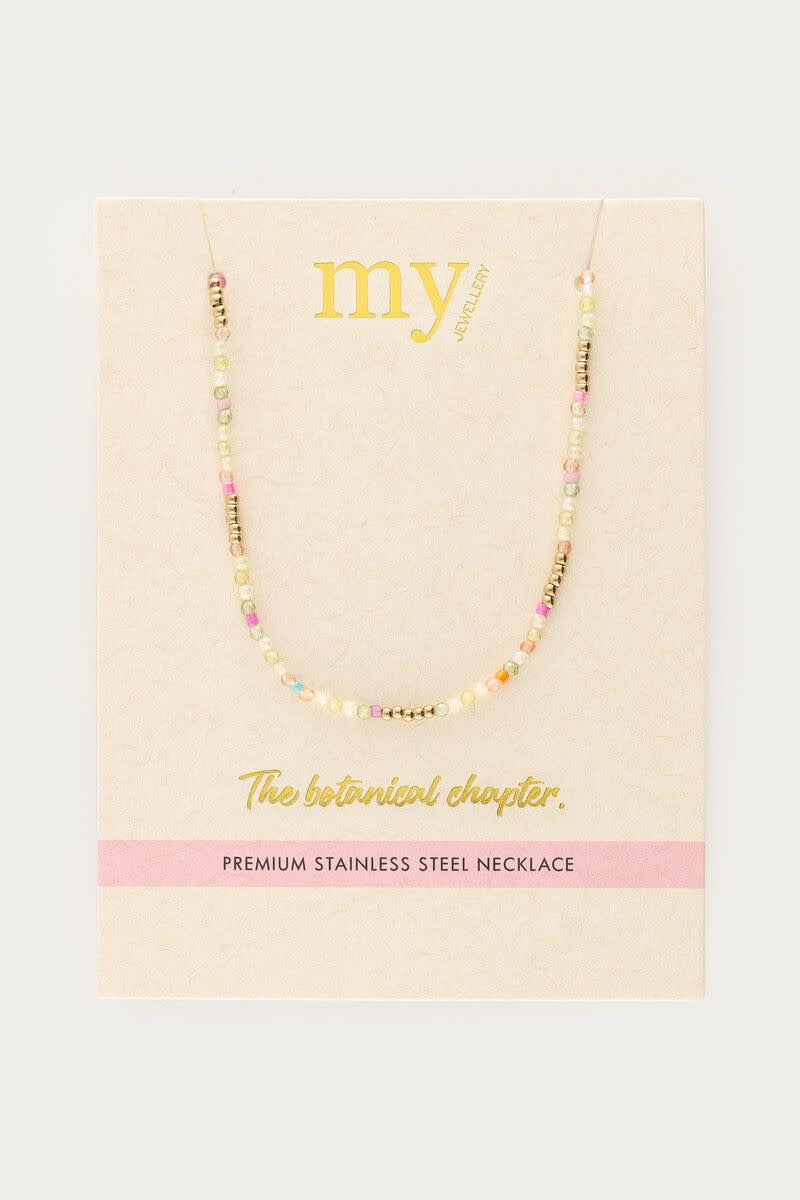 Botanical Ketting met Vier Multikleur Kralen Goud