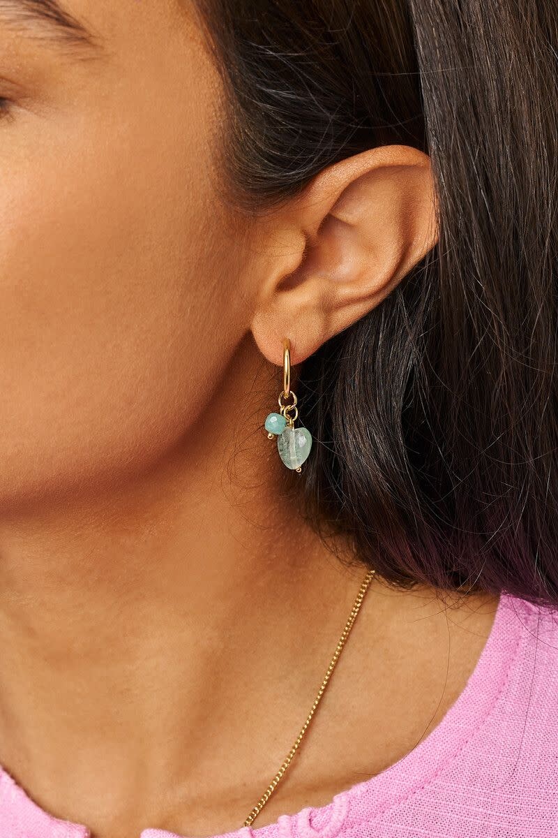 Botanical Oorringen met Blauwe Hartjes Kralen Goud