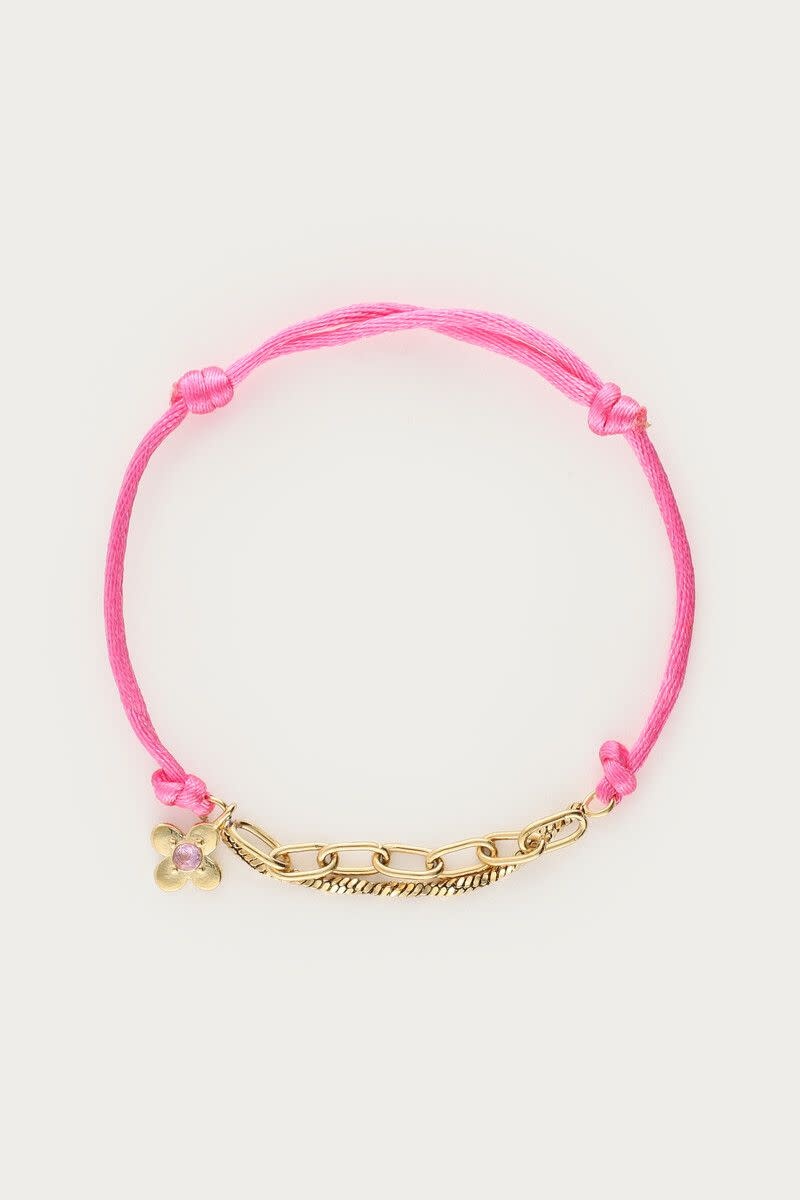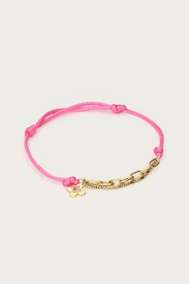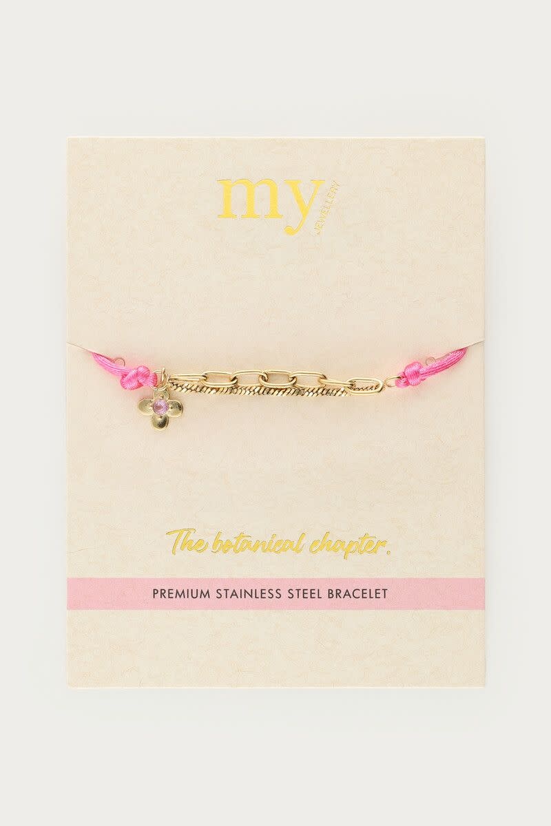 Botanical Roze Touw Armband met Bloem Goud