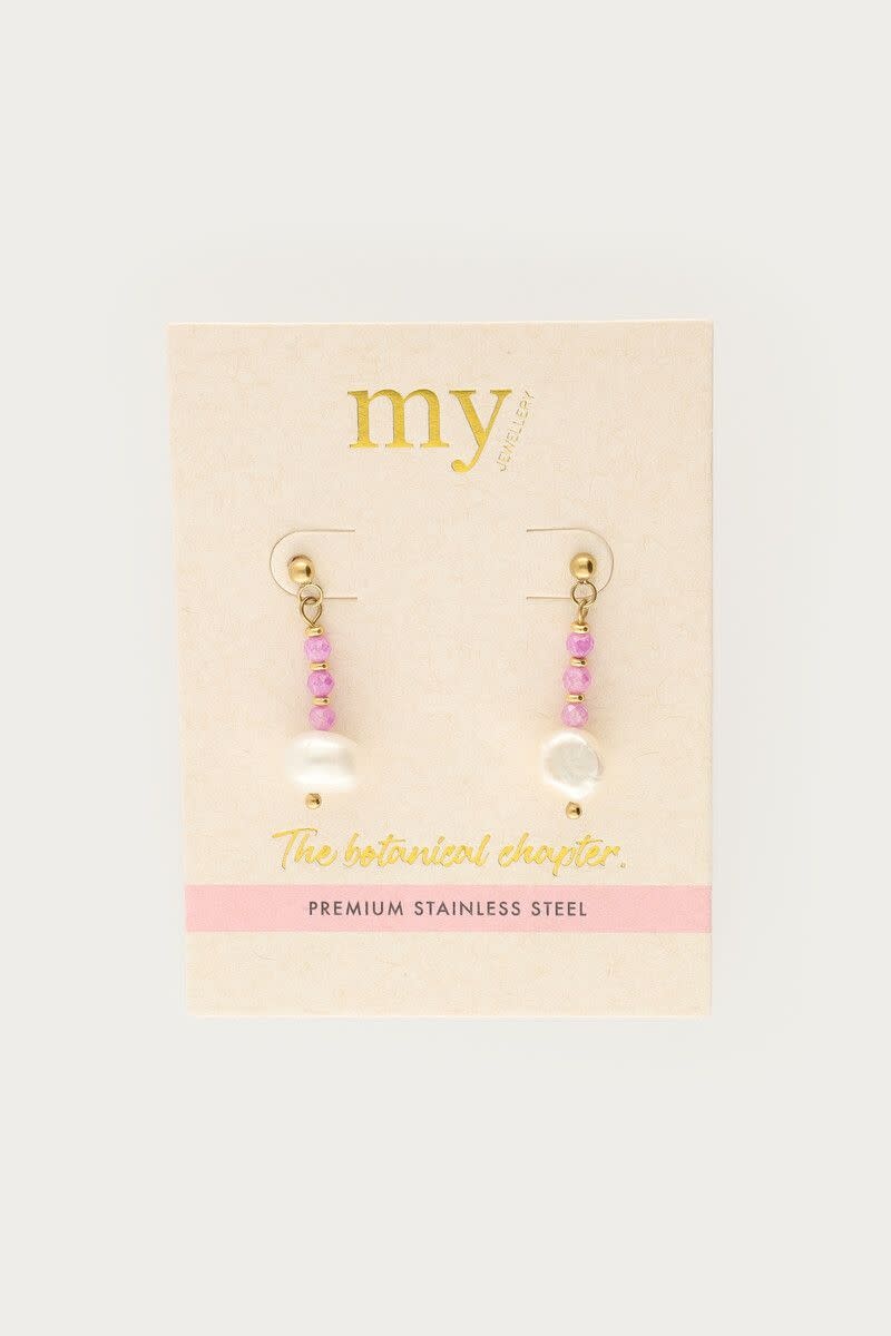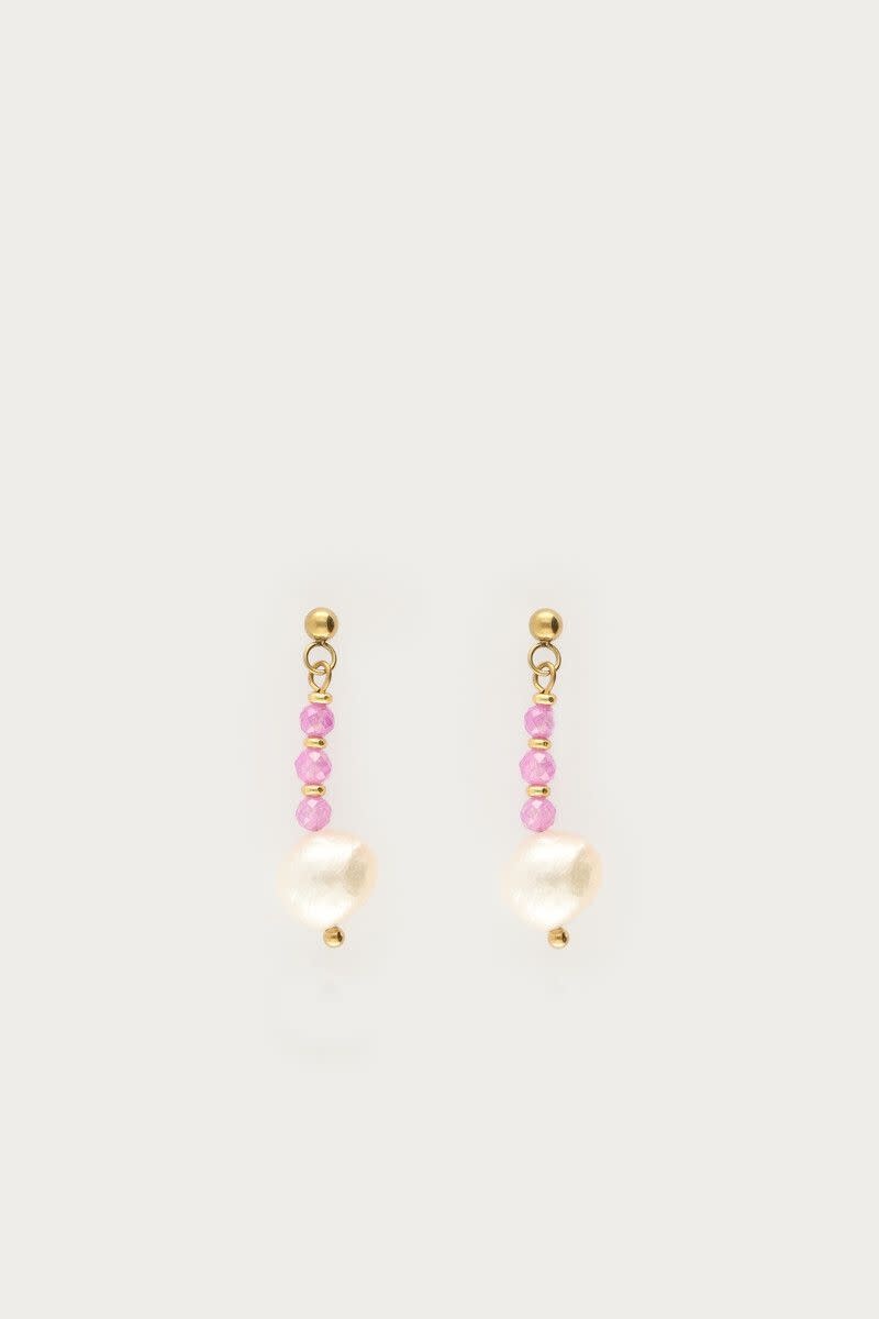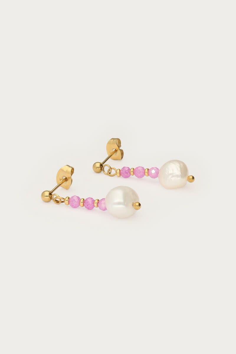 Botanical Stud met Roze Kralen en Zoetwaterparels Goud