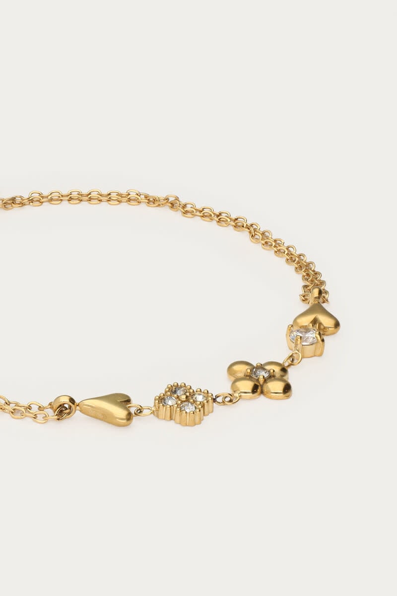 Dubbele Armband met Vijf Bedels en Strass Goud