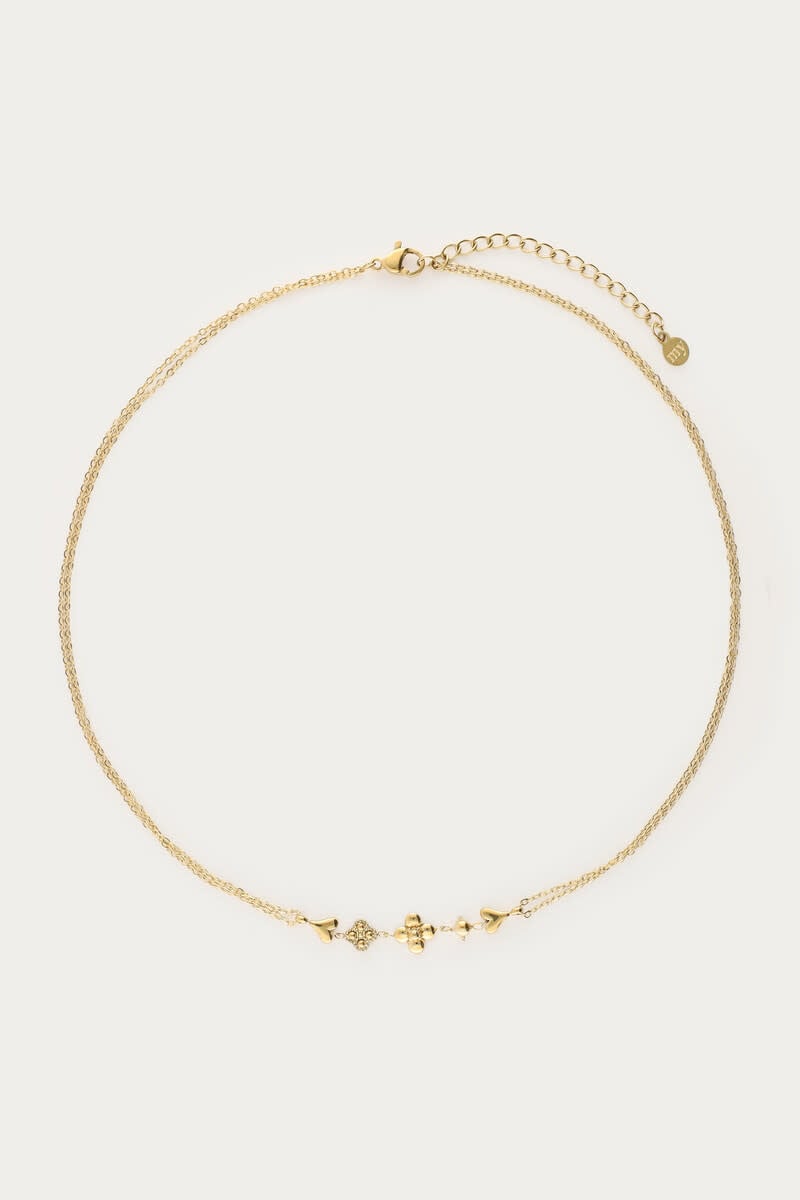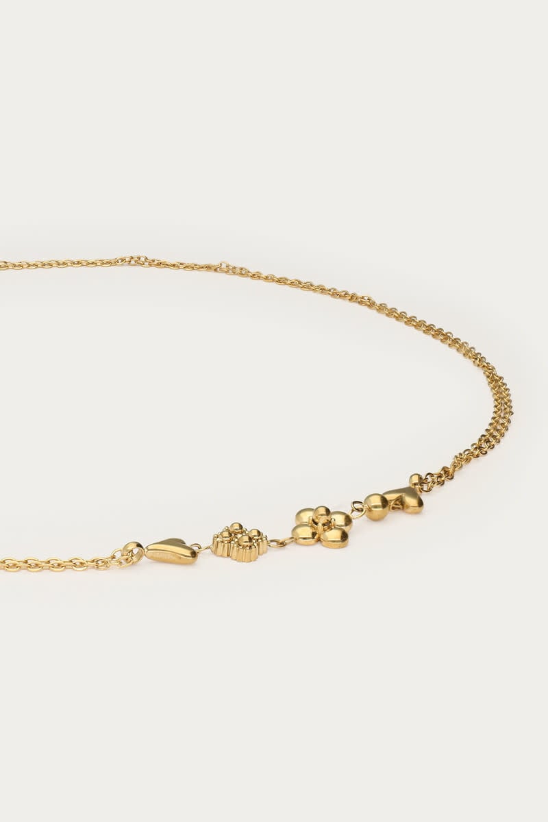 Dubbele Ketting met Vijf Minimalistische Bedels Goud