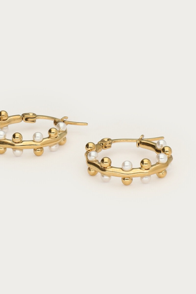 Oorringen met Dots en Mini Imitatieparels Goud