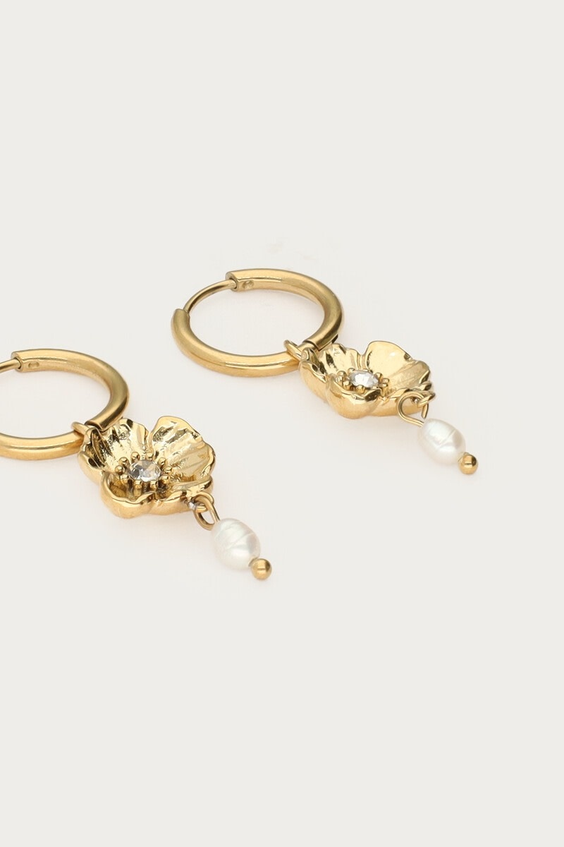 Oorringen met Ranonkel Bloem en Zoetwaterparels Goud