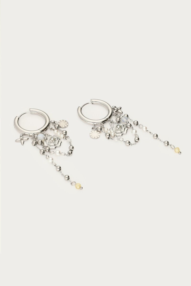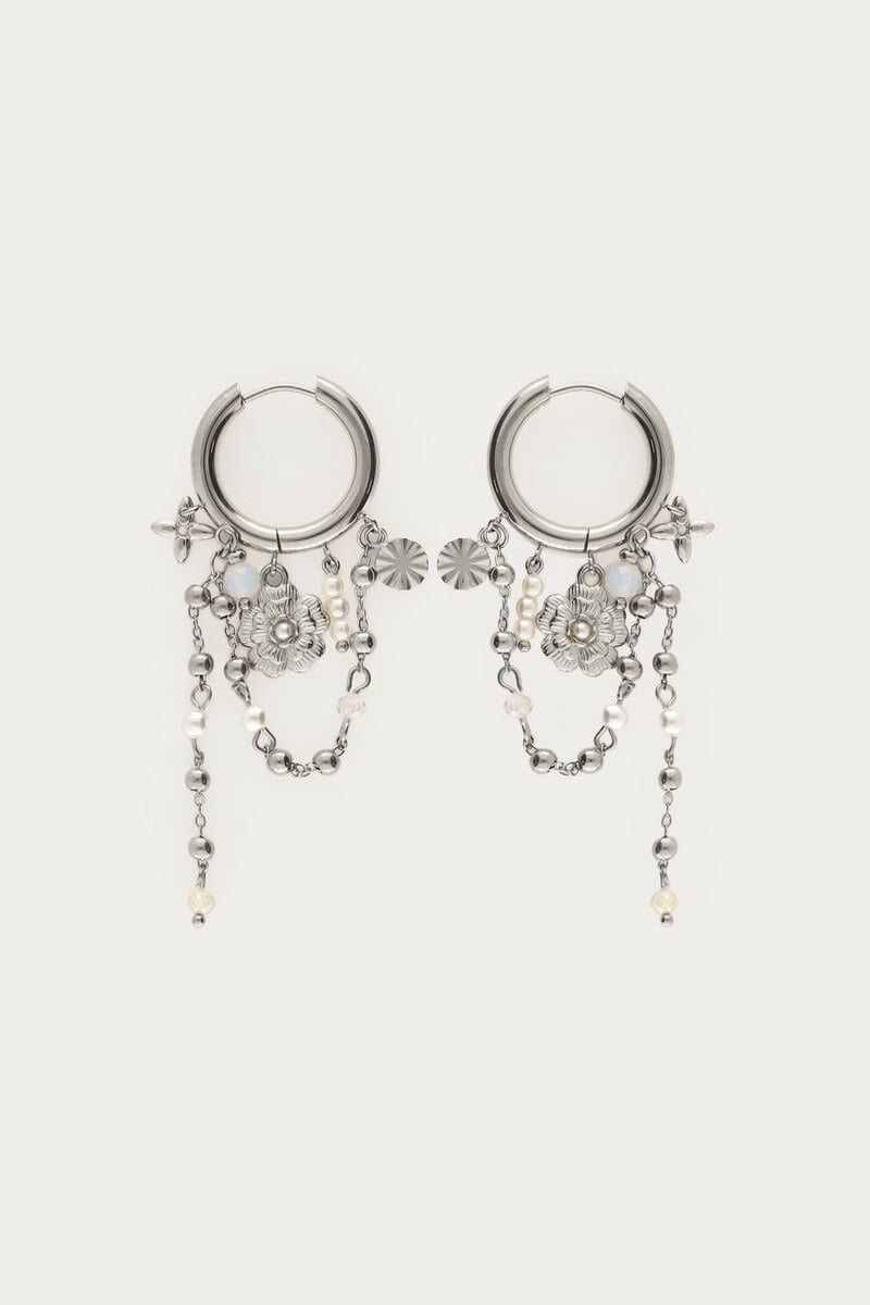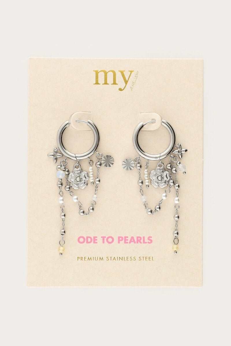 Oorringen met Zoetwaterparels en Bloemen Zilver