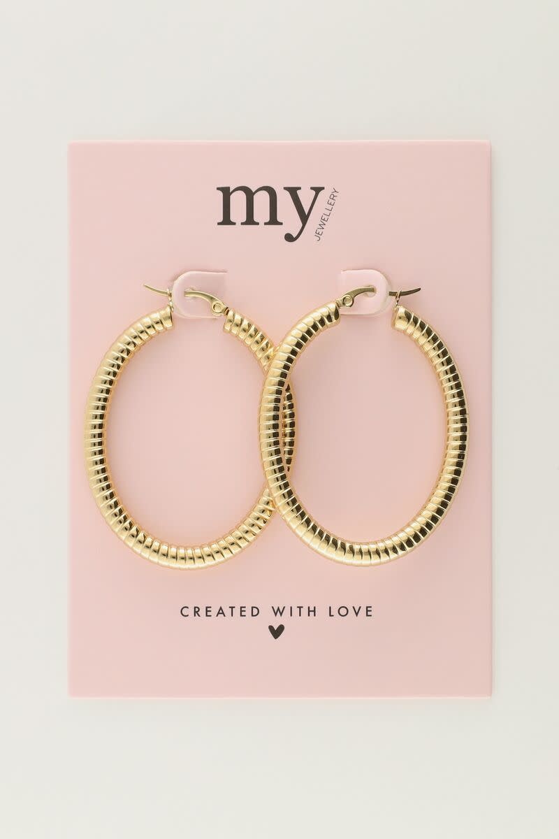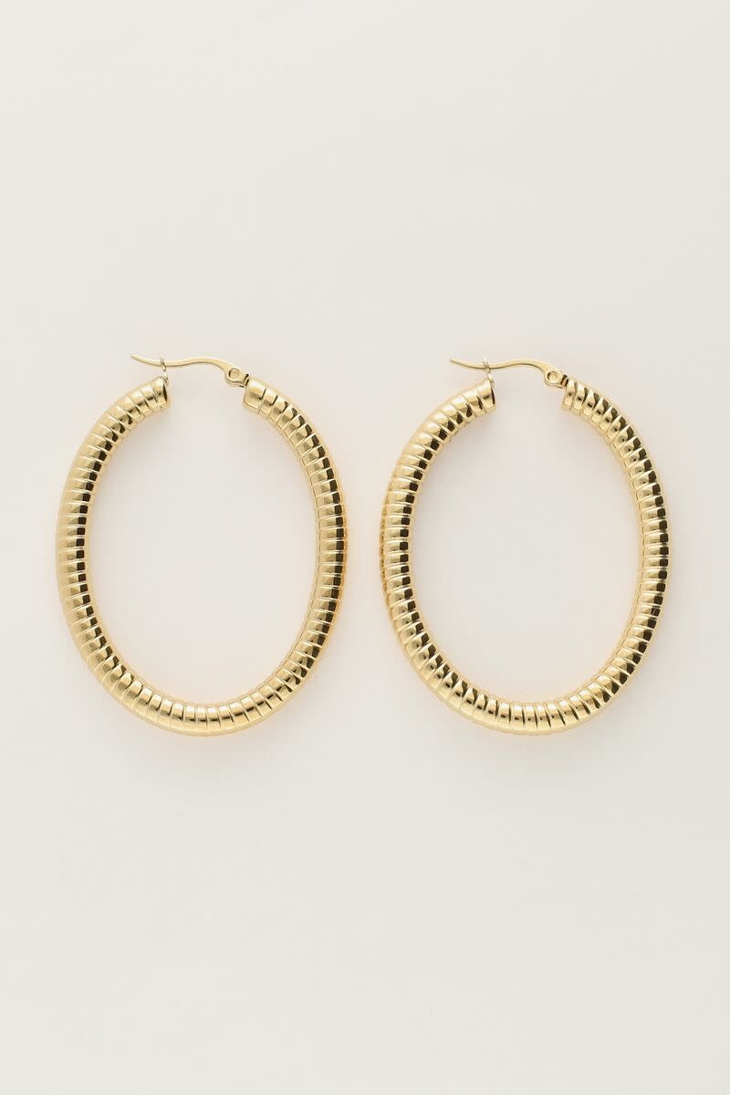 Ovale Oorringen met Ribbels Goud
