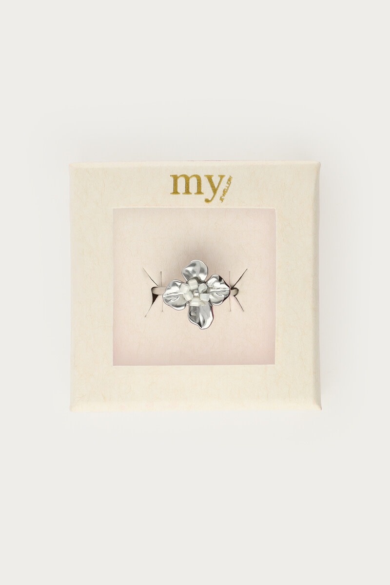 Ring met Bloem en Witte Kralen Zilver