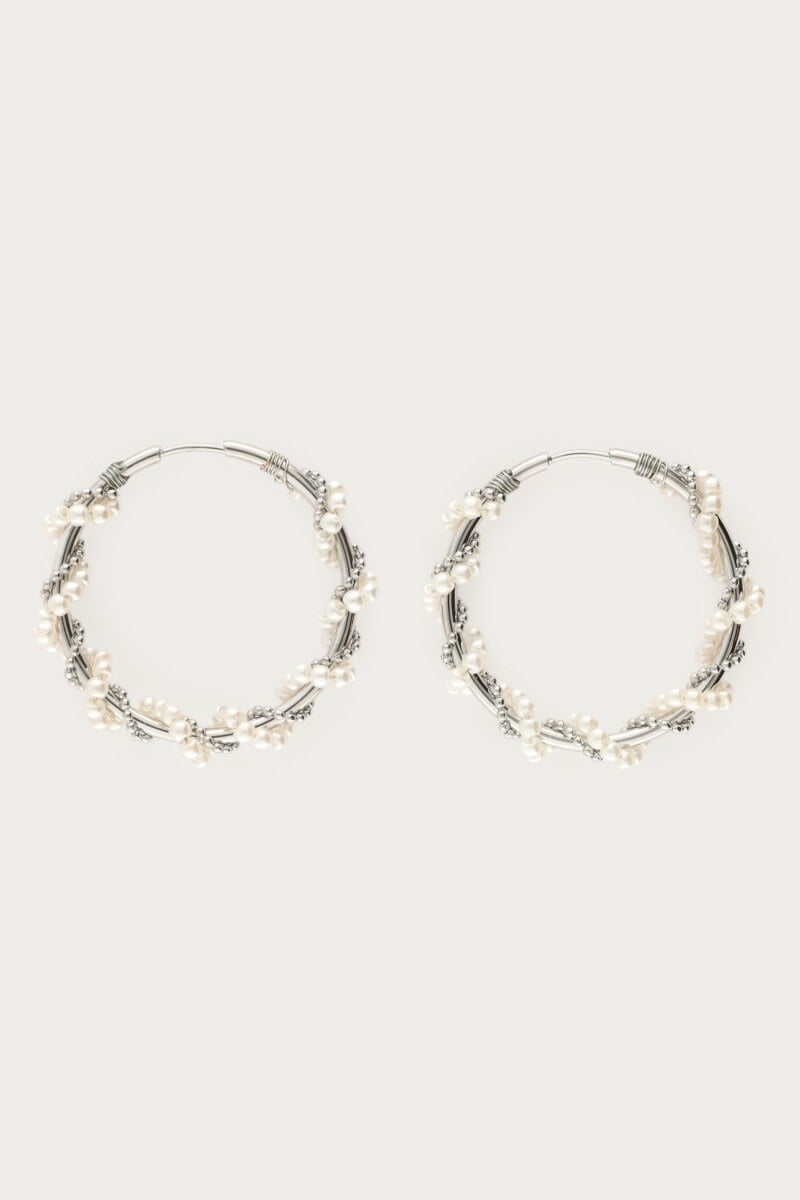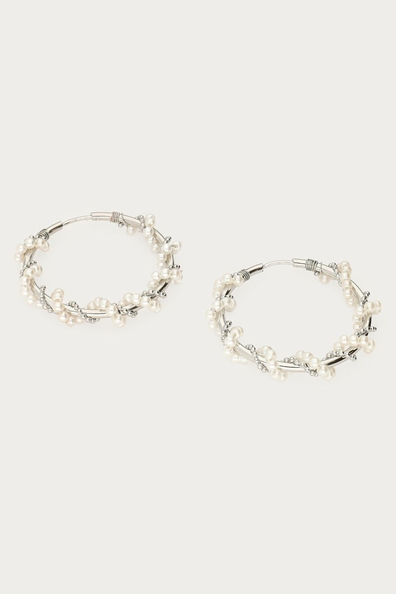 Statement Oorringen met Imitatieparels Swirl Zilver